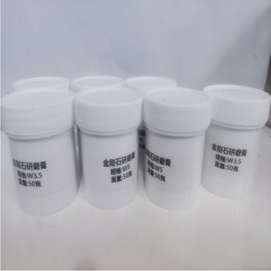 نحن نقدم سلسلتين من معجون البوليسة الماسية لدينا معجون البوليسة الماسية القابلة للذوبان بالزيت و معجون البوليسة الماسية القابلة للذوبان بالماءقوة طحن منخفضة وحرارة طحن، ويستخدم أساسا لمعالجة أجزاء من مواد سبائك عالية الصلابة مثل الكربيد التسمنت عالية الجودة، والأدوات، وأدوات القياس، وأدوات القطع، وأدوات الطحن، الخ.المعجون المذوب بالماء للماس ذو اللزجة المنخفضة، سهل إزالتها ولها كفاءة عالية في المعالجة. يتم استخدامها أساسا لمعالجة المعادن السامة قليلا ، لوحات الدوائر ، الزجاج ، السيراميك ، الأحجار الكريمة ،الأجيت والمواد الصلبة والهشة غير المعدنية الأخرى.